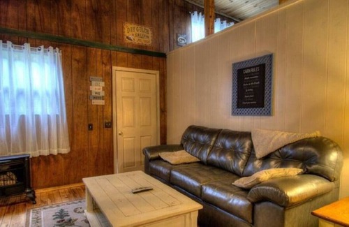 There is a full bathroom between them. There is a deck, hot tub and park side charcoal grill. The fire pit is located right on the bank of the creek, which is the perfect setting for a nice campfire in the evenings. Inside, The Cottage offers a fully equipped kitchen, flatscreen tv with satellite service, and for heat we have a electric heater and a gas heater. The two bedrooms each are equipped with queen sized beds and the bath offers a tub/shower combo.