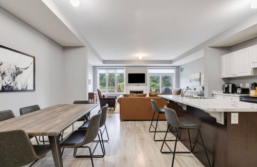 The kitchen features contemporary appliances and an adjacent dining area. Whether you prefer preparing meals at home or enjoying local cuisine from Blue Mountain or Collingwood, you`ll find all the amenities needed for flexibility and convenience during your stay. All you need to bring is your food, spices, and Keurig pods!