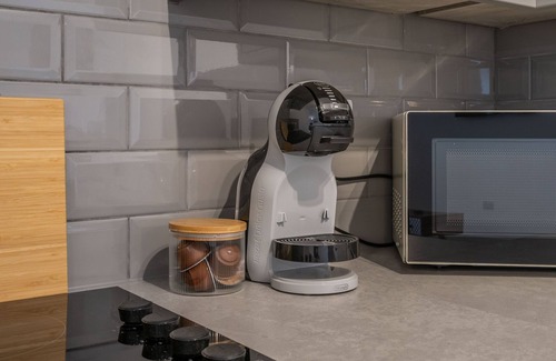 Inside the kitchen you will find all high quality appliances and cookware such as kettle, toaster, microwave, coffee machine, air fryer, iron and so on. The kitchen area also has 2 comfortable bar stools which offers an ideal place to eat, work and socialise.