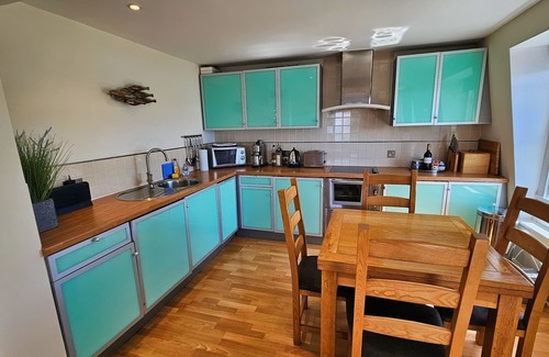 Crow's Nest is on the third floor of Wentworth House. Communal entrance hall and stairs to 3rd floor. There is a lift but, if you have difficulty with stairs, then please do not book as we cannot guarantee that it is always working. Third floor only: Enter into the hallway with doors to: Open plan living / kitchen and dining room with amazing south and west facing views across St Mawes Harbour to Place House and the Percuil River and further to St Mawes and Falmouth Bay and the Lizard peninsula in the distance. Beautifully decorated and furnished with comfortable seating, dining table and chairs, and a well-equipped, fully fitted kitchen. Master bedroom with superb sea views from the 4'6" double bed and storage. En-suite bathroom with shower over the 1/2 bath, WC and hand basin. Twin bedroom with storage. Family bathroom with full sized bath and shower over, WC and hand basin.