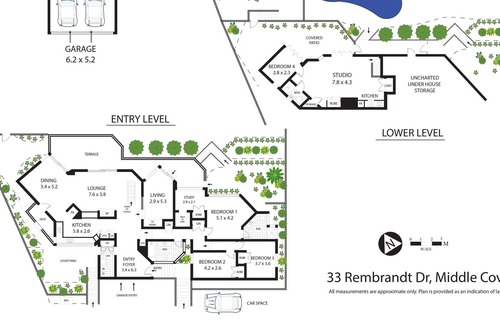 3 of the 4 bedrooms you can enjoy are found at entrance level, whilst the lower floor houses its own self-contained studio, with a bedroom, kitchenette and bathroom. Perfect as a retreat for teenagers, or for groups of friends travelling together. This is the ideal home for a serene escape, and Middle Cove has even more to offer.
