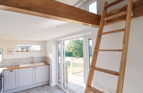 Amenities: Electric storage heaters. Electric oven and hob, fridge with freezer compartment, dishwasher. TV, WiFi. Fuel and power inc. in rent. Bed linen and towels inc. in rent. Travel cot available. Private driveway for 2 cars. Front decked area with furniture and barbecue. Sorry, no pets and no smoking. Shop 2 miles, pub 1.8 miles. Note: Guests have the option to sleep either on the sofa bed, or climb the ladder, up to the king-size bed. Note: There is limited head room in the king-size bedroom. Note: There are steps to the exterior