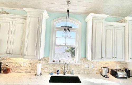 We welcome you as guests to our custom built home! Our house is one of the few houses on the island that features a pool. After a long day at the beach or instead of a day at the beach float around and relax in the pool. We are just a 2 minute walk to the beach access right at the end of our street. At the west end of Sunset Beach we are close to the end of the island with easy access to Bird Island, a reserve with pristine sandy white beaches, high natural dunes and more than 1200 acres of beautiful salt marsh and tidal creeks. Visit the sacred and peaceful Kindred Spirit mailbox there and leave a note in the journal or sit and read notes from others. Our 2700 square foot home features a reverse floor plan with the kitchen/living/dining area on the upper floor with hickory hardwood flooring throughout, tile bathrooms, quartz kitchen countertops and granite bathroom vanity countertops. Our custom wood paneled elevator stops at each floor and is just a few feet from the kitchen for the convenience of unloading groceries. Two decks on the front of the house have 12 rocking chairs (6 on each deck) to relax and enjoy the breeze. Two ceiling fans on the upper deck add to the relaxing breezes. Bed linens, bath mats and kitchen towels are provided but GUESTS MUST BRING BATH TOWELS AND BEACH TOWELS. Our home features 5 bedrooms with a ceiling fan and private full bathroom in each and an additional half bath. Hair dryers are provided in each bathroom. 2 bedrooms have king beds, 2 bedrooms have queen beds, and the 5th bedroom has 2 sets of custom built in bunk beds. The lower beds are larger: a queen and a full. The upper bunks are 1 twin and 1 extra long twin. The bunk bed room has a book light at each bed and a USB outlet at each bed with 2 charger ports. This bunk bed room would be comfortable for adults as well as children. There are 2 dressers and 4 drawers under the beds for storage along with a closet. There is a queen sleeper sofa in the living room. All bedrooms are equipped with 4 USB outlets, two on each side of each bed for your convenience. No need to bring the square chargers just bring the cords. Two sets of washer/dryers allows for multiple families to complete wash simultaneously. One laundry room is in main hallway and the second laundry room is (large regular size stackable units) in master bedroom closet. The large kitchen has custom cabinetry, a touch faucet, a French door refrigerator with bottom pull out freezer drawer, an extra beverage refrigerator, a double oven with glass top stove, fully stocked cabinets, a large pantry, a Keurig coffee maker and regular coffee pot. The extra large dining table seats 12 with 3 extra bar stools at the counter peninsula. Lots of room for dining, playing games or cards or building puzzles. The high white washed cathedral ceilings in the great room and kitchen give an open coastal feel to the house. Unlimited hot water is always available for all 6 showers (5 inside and 1 outside) from 2 Rinnai tankless water heaters. Our home features a keyless entry with the ability for you to choose your own code. No keys to lose! We welcome you to make lots of vacation memories here!