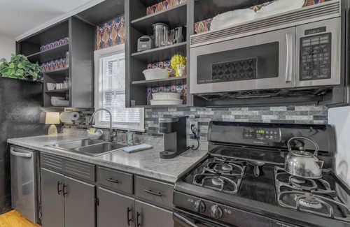 Located in the historic Glenwood-Brooklyn neighborhood in Raleigh, enjoy what this adorable 2-bedroom bungalow has to offer. With 2 queen beds, a cozy living space, and a well-equipped kitchen, guests will feel right at home. Whether you're unwinding with a book on the charming front porch or taking advantage of our super convenient location to Glenwood South, Cameron Village, NC State & St. Mary's, this enchanting retreat is the perfect place to kick back, relax, and enjoy everything Raleigh and our bungalow has to offer.