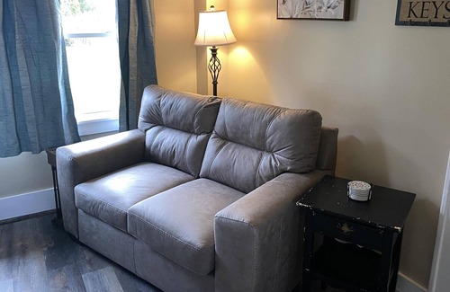 The Milltown Suites Carriage House is behind a 1920’s farmhouse and is totally unattached from the house, the interior has been totally remodeled and furnished with cabin décor. It has a king size bed (with no foot board for the tall people). The living room has a TV with Firestick built in. It has a bathroom with a big 42" shower. There are granite countertops in the full kitchen(refrigerator with ice maker, range, dishwasher and microwave). This carriage house also has a washer and dryer, so you don't have to pack a lot of clothes. Towels, wash clothes, and bed linens are provided. There is fast cable Wi-Fi and good cell phone service. It is located about 25 minutes from the Blue Ridge Parkway(at 4 access points) and downtown Waynesville. Downtown Asheville is about 20 minutes and Brevard is only about 40 minutes away.