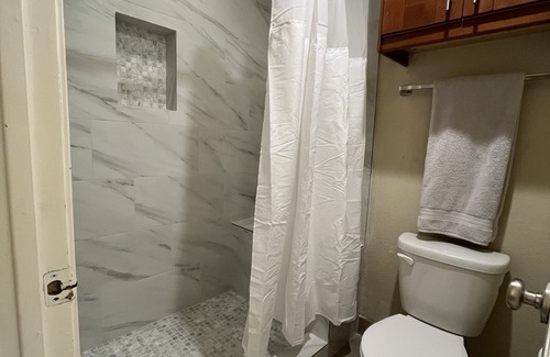 My place is great for couples, solo adventurers or business travelers who are looking for a longer term stay. This is a private one bedroom, one bath condo on the first floor, located in North/Central Austin - a prime and convenient area to a lot of amenities and not far from The Domain, Q2 Stadium (home of Austin FC), The Arboretum and Downtown. You'll have the entire condo to yourself, which comes with a comfy queen mattress for a great night's sleep, spacious closet, air mattress (if needed), fully stocked kitchen and washer & dryer. WiFi and basic cable are included. A custom sliding barn door helps separate the bedroom from the living room. The shower was renovated in Feb of 2024, and the HVAC is new as of June 2024. Just a heads up - every unit on the first floor can hear their neighbors above them, so know that you may hear my upstairs neighbors from time to time.