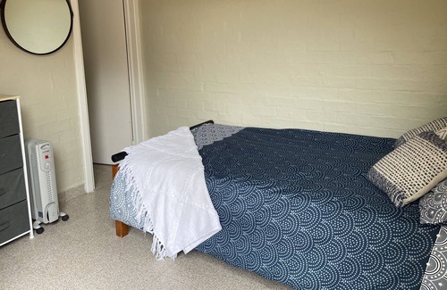A cute little granny flat with a SINGLE KING size bed (one person only), ensuite, kitchenette overlooking a court yard with olive tress and heaps of birds. It has it's own private access and there is free street parking for 1 car. We do have a very friendly cat & dog, but they spend most of their time in the main house. The kitchenette is equipped with bar fridge, microwave, electric cooker, toaster & kettle. The flat comes with all linen and crockery too. We live in a quiet and peaceful suburb with the beach only 30 mins walk or a 5 min bus ride. There is a bus stop in our street that goes to the foreshore, shops and train station. We also do offer usage of our washing machine for a small fee.