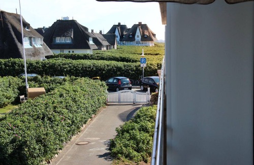 The 1-room flat is located on the 1st floor of the flat house Dünenhof-zum-Kronprinzen with a large balcony. The house is located in the middle of a dune directly on the cliff of Wenningstedt. You can reach the beach in just 1 minute's walk, and the town centre in about 5 minutes.