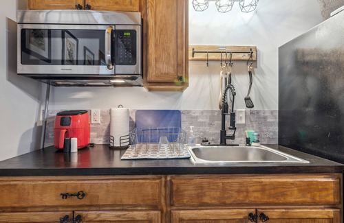 Ahoy! Welcome to Davy Jones' Loft! This private suite is detached on its own lot in a quiet residential neighborhood. The treehouse has a beautiful view of Hewlett's Inlet. This portion of the yard is fenced in for pets. There is a gas grill, air fryer, microwave, coffee maker, hair dryer, iron and firepit. The captain's quarters is a loft with a king bed. The berth includes a full pullout couch and twin bunk beds. Local restaurants are <1 mile away. Downtown and Wrightsville Beach are <15 min drive. Hidden treasure awaits!
