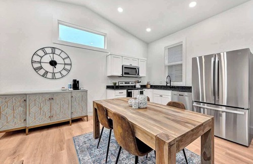 Welcome to our charming Siloam Springs getaway, where modern comfort meets Southern hospitality! Nestled just steps away from downtown, this stylish guest house is your perfect retreat with a pool for ultimate relaxation. With private access, 10' vaulted ceilings, 70" TV in the open concept living/kitchen/ dining area, custom tiled walk in shower, and top of the line Queen size bed in bedroom, you will be surprised how big the space feels and functions. The couch makes into a comfy queen bed.