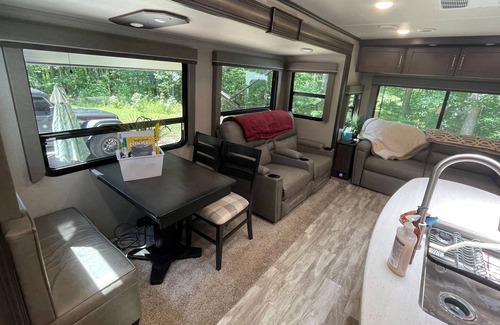 Great 2020 RV sleeps 4 comfortable with oven, convection microwave and two TV. Very secluded and a nice get away. Property is 5 minutes from Winn springs boat ramp and can be accessed without getting on the main road. Atv friendly if you would like to bring one and close to the state park and yellow creek boat launch. RV has all utensils appliances and very accommodati