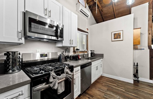 Discover a cozy mountain retreat in Julian! This charming house features a queen bedroom, a loft with a queen and single bed, a full kitchen, and a living area with a TV. Enjoy modern comforts like AC, a coffee maker, and smart lock access. Perfectly located near historic downtown Julian, offering a blend of comfort and convenience for your ideal vacation.