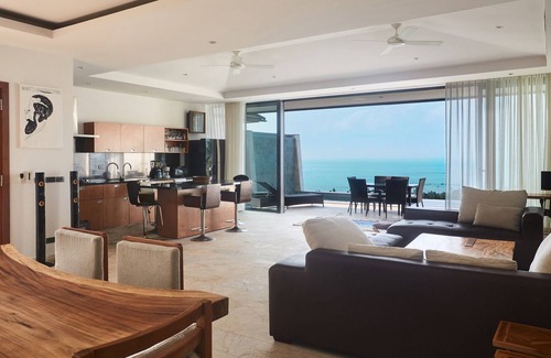 The villa has 4 double beds and two single beds which can host up to 10 people. It offers the guests the comforts of their own home from home combined with a tropical paradise location, lavish surroundings and phenomenal ocean views.