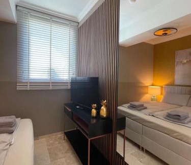Deluxe Sunrise Sky Terrasse 2 Bedroom Design Apartment & Fantastic Lake View is a recently renovated apartment in Maderno where guests can make the most of its rooftop pool, garden, and barbecue facilities. Free Wifi is featured throughout the property and private parking is available on site. The accommodation offers an elevator and private check-in and check-out for guests. Offering a terrace and mountain views, the spacious apartment includes 2 bedrooms, a living room, satellite flat-screen TV, an equipped kitchen, and 1 bathroom with a walk-in shower. Towels and bed linen are provided in the apartment. For added privacy, the accommodation has a private entrance and soundproofing. Guests at the apartment will be able to enjoy activities in and around Maderno, like snorkeling, cycling, and fishing. A baby safety gate is also available for guests at Deluxe Sunrise Sky Terrasse 2 Bedroom Design Apartment & Fantastic Lake View. Desenzano Castle is 18 miles from the accommodation, while Terme Sirmione - Virgilio is 22 miles away. Verona Airport is 38 miles from the property.