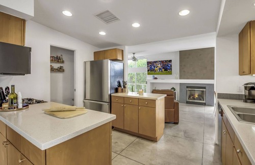 This Mid-Century inspired home is located in highly-coveted B-Bar H Ranch and is perfect for all your vacation needs. It's where style and sophistication meet entertainment and fun. Treat yourself to the perfect vacation rental close to Downtown Palm Springs, where you will find shopping and casual and fine dining options. Desert Dream is a stunning three-bedroom, private pool and spa offering 1,616 square feet of luxury living. Within the living room, you will experience the perfect area for entertaining. Enjoy the beautiful balcony overlooking the pool and impress your friends with your hidden talent in mixology or take in a roaring fire while creating new memories on your vacation.