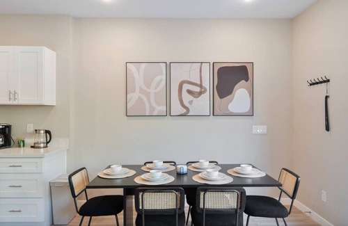 Enjoy a private outdoor area with a putting green and games, 65` Smart TV, comfy couches, a fully equipped kitchen and plush bedding. Workspace is provided for remote workers too. 💻