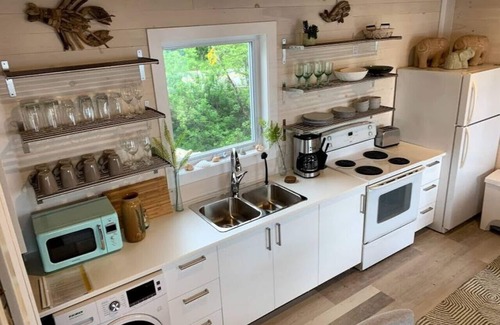 Our designer oceanfront villa has breathtaking panoramic views of the bold Atlantic Ocean. It boasts a comfortable outdoor living space to lounge or dine with a large private hot tub a private sauna and shared fire pit to relax and unwind. The villa is a spacious open concept studio suite which contains a queen bed, double sofa bed and and bright open loft with queen mattress to sleep or curl up and read your favourite book. Full bath and kitchen with all the amenities included. This retreat has a private hot tub , sauna .