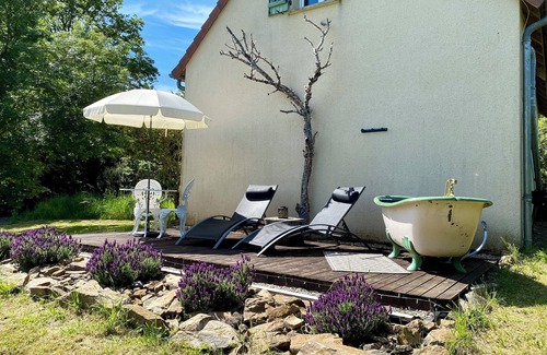 Les Belles Étoiles, a detached house with an outdoor bath - which is connected to hot water and can be used like a hot tub - set in its own private garden in the heart of nature, is the perfect place to enjoy a holiday in the French countryside.