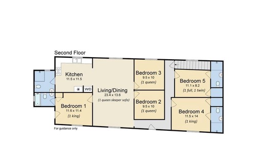 If you find you have less guests than your original booking, 1 price adjustment may be made prior to your arrival. Refund is 50% of additional guest fee up to 1 week prior to arrival.