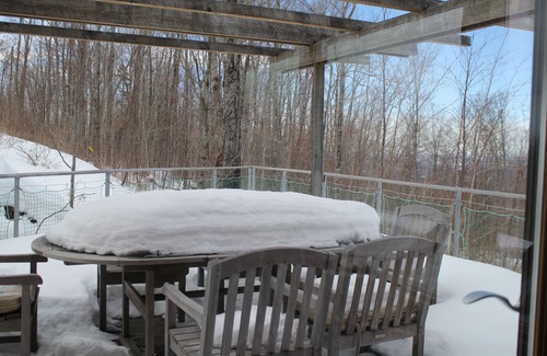 The Dijkstra house is nestled on the side of Mount Agassiz in the heart of the White Mountains on 7 acres. The house, designed by Dutch architect Tjeerd Dijkstra, is a modern post and beam construction. It features large windows giving an expansive view of the valley and surrounding mountains.