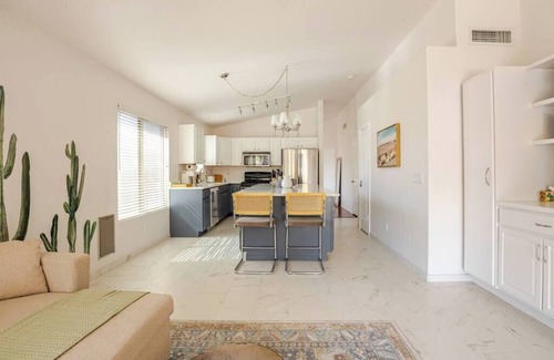 Welcome to your home away from home in the heart of Uptown Phoenix! Carefully designed for your peaceful retreat, our home offers relaxation and luxury all in one. Relax by the heated spa pool or enjoy mini golf while being close to the best of Phoenix-Scottsdale area. The home is located just steps away from Desert Ridge Marketplace and JW Marriott, and is a short drive to Old Town Scottsdale. Whether you're here with friends, family, or seeking solo solace, welcome to your Arizona retreat!