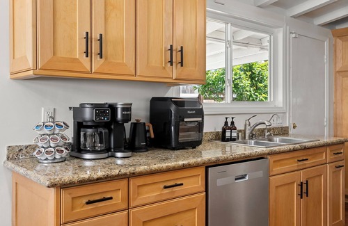 • Fully stocked kitchen with/ stainless steel appliances, coffee maker, air fryer, blender, and more
