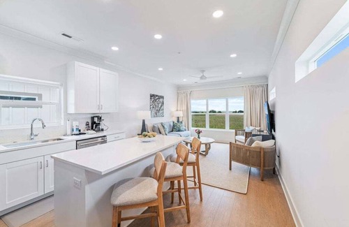 DETAILS: Winyah Bay Club features 17 stylish, individual cottage units, each ideal for large wedding parties, golf enthusiasts, and families. This cottage offers two spacious bedrooms, one and a half baths, and a master suite with breathtaking water views. The open-plan living room, kitchen, and dining area on the second floor are designed to maximize the stunning waterfront vistas, making every stay memorable and luxurious. This cottage does not have a porch.