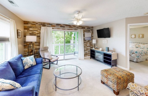 The condo comes well-appointed with inviting decor and all the contemporary home essentials you'll need for complete peace of mind. The full kitchen makes it easy to plan and prepare home-cooked meals. There's even a Keurig coffee maker for added convenience. Comfortable seating and smart TV welcome casual downtime in the living room. The covered balcony offers a breezy perch with treetop views of the complex. Complimentary WiFi, central air-conditioning, and a private washer/dryer provide an extra layer of comfort and convenience to your stay.