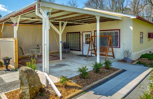The covered front porch is everyone's favorite place to be when staying at our Lookout Ridge Place Apartment. The fresh mountain air and peace and quiet is both relaxing and inviting. You will find yourself enjoying the table and chairs that is near the wooden porch swing and the charcoal grill.When entering into the home, you are welcomed by vaulted ceilings and an open concept living-room, office area, kitchen and dining area. There is a smart TV in the living room and the TV stand is filled with wonderful board games and puzzles that you can use! The fully stocked kitchen will have everything you need to make a meal during your stay. Including plate-ware, dish-ware, silverware, pots, pans, etc. There is a coffee machine with medium roast grounds available. In the kitchen there is a stackable washer and dryer as well as another workspace desk area that you can utilize during your trip.