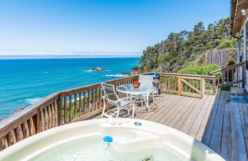 Experience a one-of-a-kind coastal getaway in Gualala by staying in Moonstar Cottage. This one-bedroom, one-bathroom vacation home sits along the oceanfront, offering sweeping blue ocean views from nearly every room. Enjoy the excellent location for whale watching, listening to the sea lions below, or hot tubbing with an ocean view - perfect for a couple's getaway. Don't forget to bring your furry four-legged companion; this home is dog-friendly!