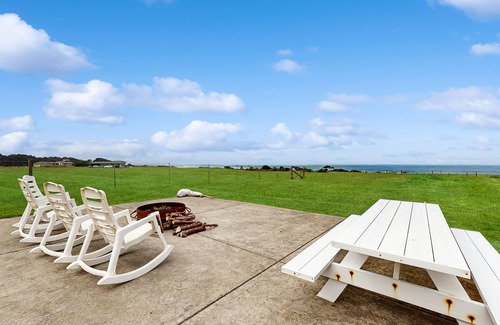 Find yourself on five private acres of beachfront beauty complete with an ocean-facing hot tub. Relax in the large living room and take in the panoramic view, and then enjoy a movie or favorite show on the large, flatscreen TV. Or just spend your days and evenings entertaining friends and family while grilling out in the yard.