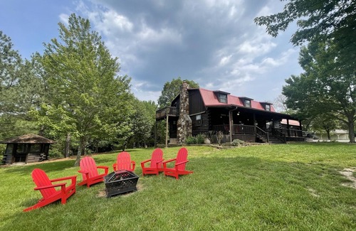 Dogwood Cabin is a private vacation destination in the Ozark Mountains close to Branson, Table Rock Lake & Eureka Springs. This authentic log cabin sits on 7 acres that boarder Dogwood Canyon Nature Preserve. Outside pass time on the front porch rocking chairs, relax in the hot tub or by the fire pit, explore & take in the panoramic mountain & lake views. Inside relax in the spacious, updated, luxurious yet comfortable interior with 2 fireplaces, pool table, foosball & games. Perfection!