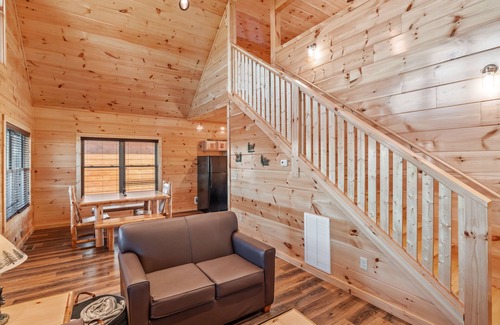 Escape to "Dolly Bear Hideaway", a dog-friendly log cabin nestled just a short distance from the bustling Pigeon Forge strip. Ideal for a romantic getaway or a small family adventure, this cozy cabin boasts a fully-equipped kitchen with stainless steel appliances, and a comfortable living room featuring an electric fireplace and flat-screen TV. Relax in the king-size master suite on the main level or enjoy some fun in the loft, complete with a twin bunk bed, pool table, and a second full bathroom. Additional amenities include a washer, dryer, and a hot tub, making it the perfect destination for a Smoky Mountain vacation.