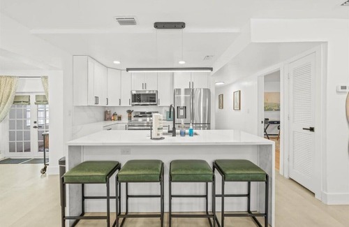 🍳 Chef’s Kitchen with stainless steel appliances + island seating for 4