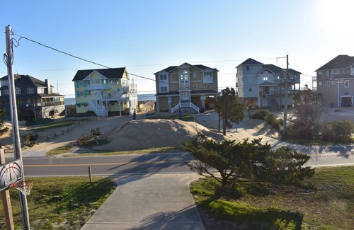 Dolphin Delight is a fabulous family friendly Semi-Oceanfront 5 Bedroom 4.5 Bath home with Private Pool and Spa. It is located only steps from a great beach and in the heart of Avon. Enjoy ocean views from either of the two decks facing the ocean and watch over the pool and volleyball court from the two decks facing the sound side of the island.