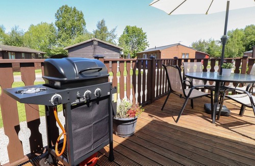 This ground-floor lodge rests in South Lakeland Leisure Village and can sleep four people in two bedrooms.
