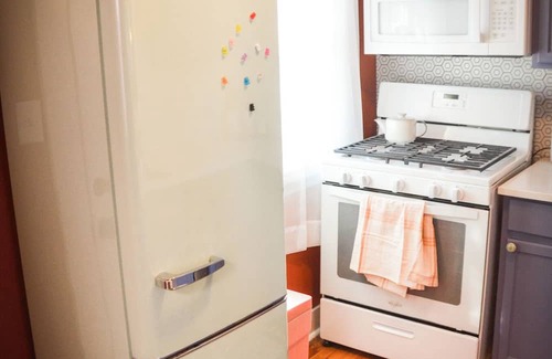 Our historic urban cottage is on a busy street in the city. There are pedestrians enjoying urban living and cars driving by with a bus stop and city bike share across the street. If you're looking for a fun filled visit to the city, you'll love it here. This is the neighborhood where we live, and where we are raising our family. We are excited to share our artsy and electric neck of the woods and community with you.