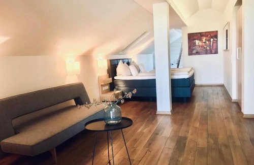 Nestled in Brauneberg, this 1-bedroom, 1-bathroom apartment brings it all within your reach. Fans of nature and the outdoors will love being 23 minutes by car from Saar-Hunsrueck Nature Park and 28 minutes from Hunsrück-Hochwald National Park. Thanks to the convenient onsite parking, you can either leave your vehicle behind and let your feet make short work of the 7-minute walk to Ferienweingut Boujong, or easily tackle the quick 5-minute drive to Weingut Max Ferd.