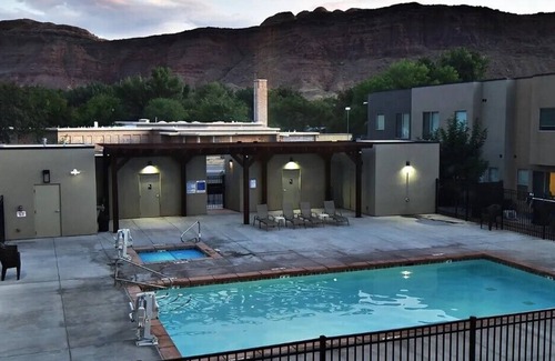 Downtown Moab | Entrada | Pool Hot Tub | Near Arches is located in Moab. Downtown Moab | Entrada | Pool Hot Tub | Near Arches provides accommodation, featuring Pool, Hot Tub, Wellness Facilities, among other amenities. This House features Pool, Hot Tub, Wellness Facilities, to make your stay a comfortable one.