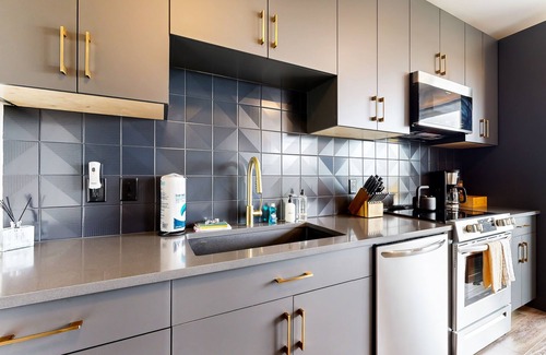 This bright, open-concept vacation rental welcomes you in with designer furnishings and playful decor. Travelers on a budget or those craving a home-cooked meal will be delighted when they see the beautiful full kitchen complete with high-end appliances. If you're feeling like a restorative night in, stream all your favorite shows and movies on the smart TV in the elegantly furnished living area.