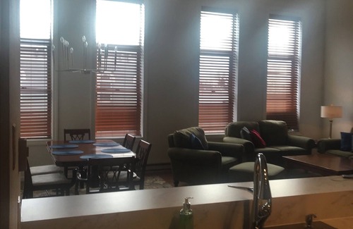 The Blackhawk Avenue Loft is located in the center of Historic Downtown Prairie du Chien. The apartment was recently renovated and is now available as a great getaway space. The loft is open concept living room, dining room and kitchen. There are two bedrooms and two full bathrooms. hardwood floor throughout and tile in the bathrooms. You are within walking distance to the Mississippi River, St. Feriole Island and the Prairie du Chien Marina. All of the downtown restaurants, bars and shops are within one block or two from this location.