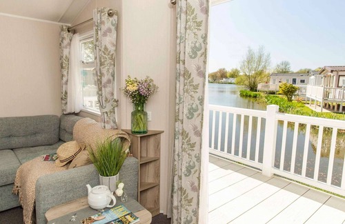 Drakes View has a great-sized lounge area with a corner sofa, an electric effect fire and a TV - the lounge area looks directly over Mallard lake so you can enjoy the views whilst relaxing in the lounge.