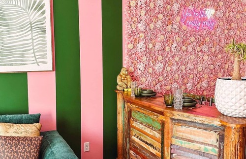 Welcome to Dreaming With Dolly, a magical pink haven that embodies the vibrant spirit and charm of Dolly Parton's wildest dreams! Nestled at the corner of Germantown and the Buchanan Arts District, our boutique condo offers a kaleidoscope of enchanting details to help make your stay one to remember. Only 2 short miles from Broadway's lively bars, pink reigns supreme in our unit with mesmerizing stripes and a lush flower wall that creates the perfect backdrop for all of your Nashville selfies!