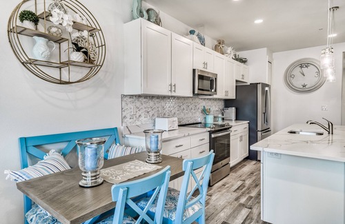 Brand new custom condominium. Steps away from the private beach access, restaurants, shops, and entertainment. Beautifully decorated with personal touches throughout. Perfect for families or couples traveling together with 2 King beds/en suite baths plus an adorable twin bed nook for the kids.