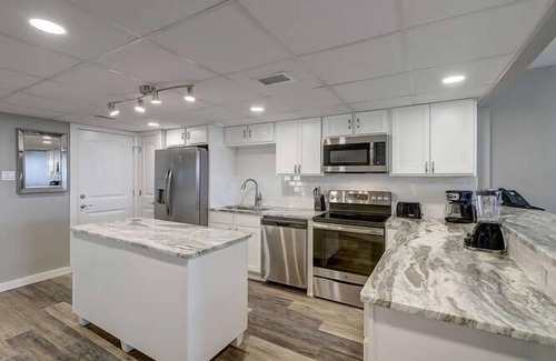 Unwind in this beautifully decorated 2-bedroom, 2-bathroom coastal condo on the first floor. Cook in the fully equipped kitchen with an island counter top, relax in the spacious living room, and sleep soundly in two king bedrooms with en-suite bathrooms. The living room also has a queen sofa sleeper for additional sleeping space. Enjoy flat-screen TVs in all rooms and Wi-Fi throughout the unit.