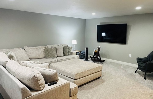 Built in 2019 and located in a safe, quiet neighborhood. This home can accommodate 8 guests, but could sleep 10, we will offer 1 thick queen air mattress that can be used in the lower level living room, where there is also a full bath. Our home is stocked with all the necessities, bedding, towels, dishes/kitchen essentials, ninja coffee bar, gas fire place, and washer and dryer. We also have a pack-n-play and highchair available upon request.