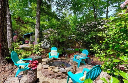 Come enjoy the lovely Blue Ridge Mountains In North Carolina in the town of Sapphire with amazing waterfall hikes. Drive just a few minutes away to Gorges State park. There is Arjun jaquzzi on the big Porsche where you look out at trees and can hear the birds sing. Coffee machine inside and full kitchen. Sit outside and soak in the wood rocking chairs and watch your worries melt away. This property has two different homes on it that share the amenities and you can sometimes rent out both please ask if needed. Sometimes one is not rented so you will have it all to yourself.. There are lots of natural green foliage on the property and nice tall green trees and certain times lots of flowers. So many great things to do right around the corner, including lakes for boating and tubing down the river, fishing, horsebackriding, sapphire golf course, hiking, gems, tennis, delicious food, nice people & fun and art and music events.