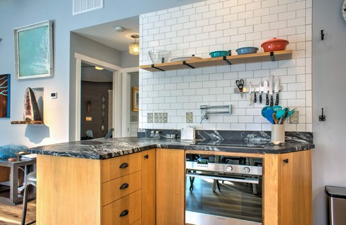 Whether you're seeking sanctuary or adventure, Asheville Roundhouse is an ideal mountain vacation rental to call home away from home. Nestled into a peaceful property southeast of Asheville, this eco-friendly round house pleases with modern decor and comfortable furnishings that welcome you to relax. The fully-equipped kitchen affords you the opportunity to prepare your favorite meals or wrap something up for a picnic on the Blue Ridge Parkway. There is high speed internet and various options for productive time either inside the home or outdoors on the front deck or in a comfortable Adirondack chair alongside the gas Fire Pit. The outdoor space at Asheville Roundhouse is ideal for taking advantage of the mountain weather. Pick a seat on the deck and soak up the sunshine while listening to the birds sing. With double doors encouraging fluid movement from inside to outside, the large deck places you in a paradise of ever-changing, undisturbed natural beauty, the perfect spot for outdoor dining and grilling. With both easy access and the feeling of absolute privacy, this home offers a huge yard bordered by woods that's perfect for stretching your legs. Travelers seeking inspiration will fall in love with Asheville Roundhouse and look forward to returning again and again! This Asheville vacation rental is located in Fairview and is approximately 18 minutes from downtown Asheville.