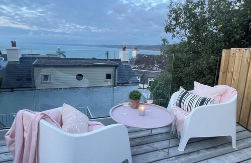 There is an elevated terrace at the rear of the cottage with amazing views of the sea. We have a new six seater dining table and chairs to sit, eat and relax outside.