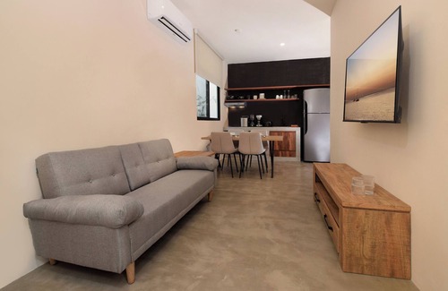 Welcome to El Coati, a stunning garden-level condo in Tulum! Located on the first floor of the brand-new Tuane complex, this unit features two bedrooms with queen beds, a twin pull-out sofa, and space for up to 5 guests. With a full kitchen and a kitchenette in the lock-off bedroom, your group can enjoy both comfort and privacy. With a 50" Smart TV in the living room and starlink wifi, you'll be able to stay connected while enjoying a peaceful stay. The unit has a private terrace with outdoor seating as well. Be among the first to experience this tranquil, modern retreat—perfectly situated to explore everything Tulum has to offer!